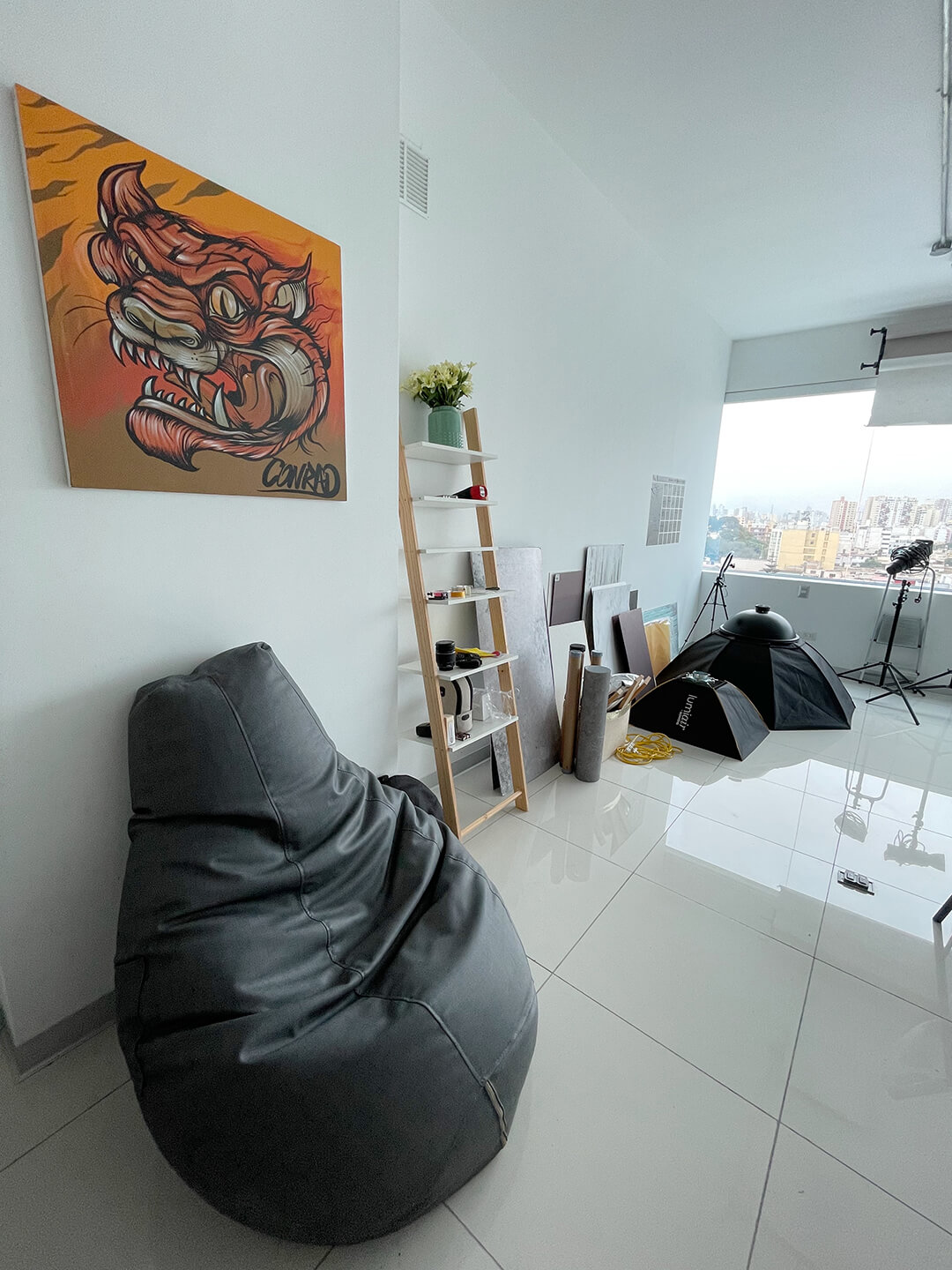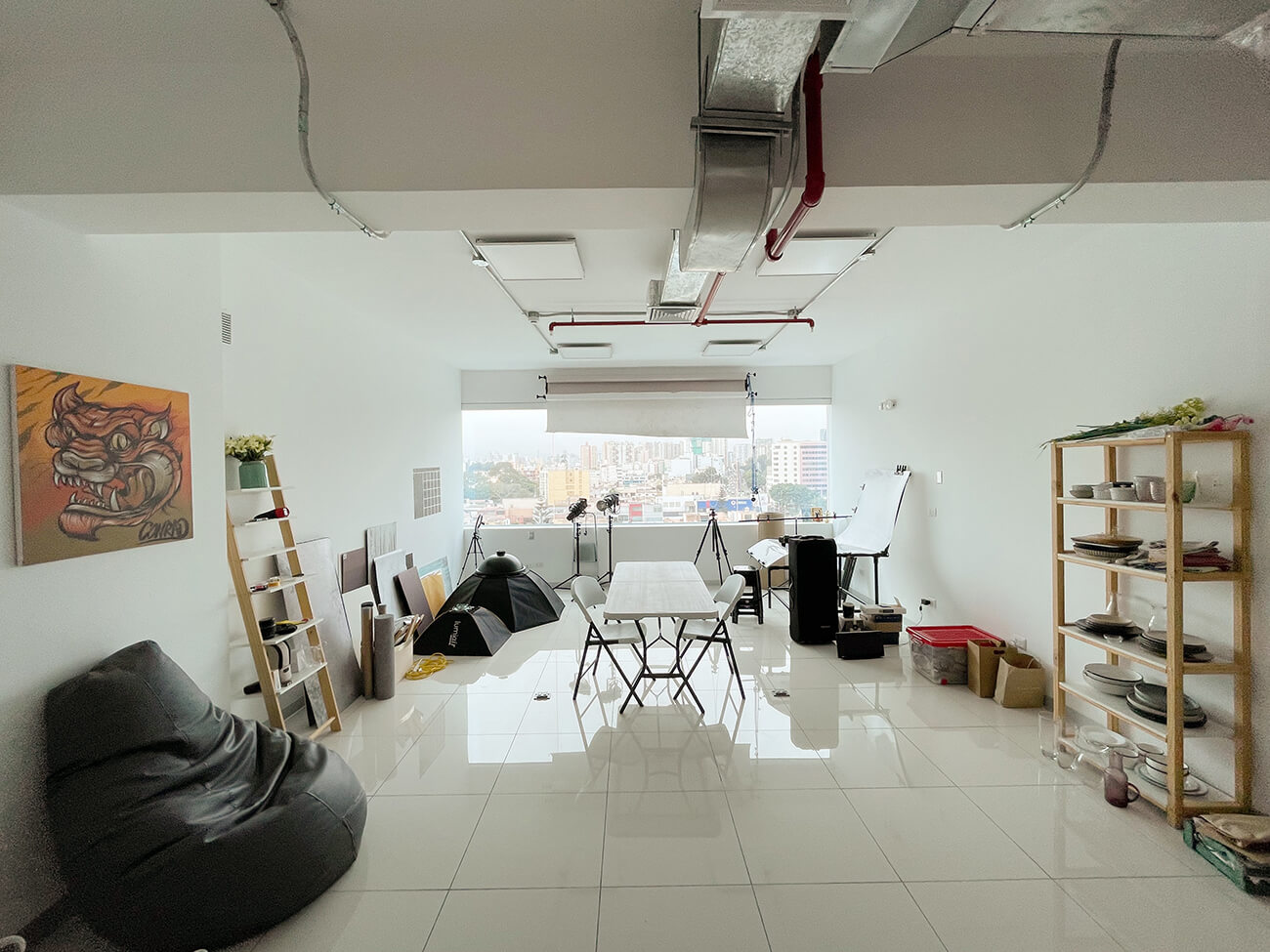 Nuestro espacio: 90m2 de espacio creativo con posibilidad de trabajar con luz natural y/o luz artificial. También contamos con un kitchenette y dos baños/probadores.